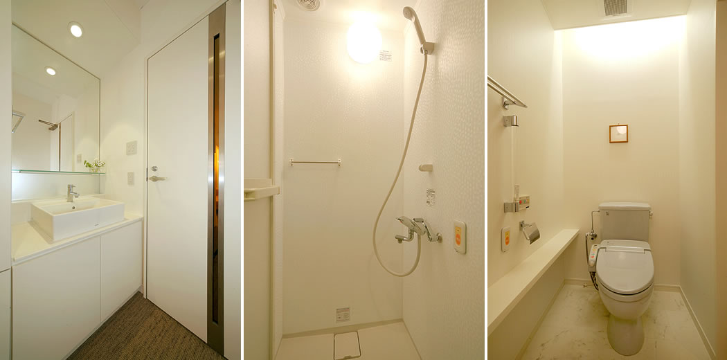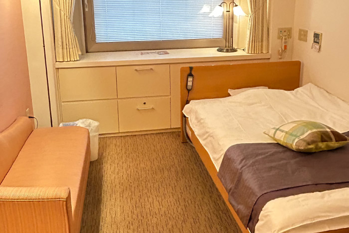 家庭的な雰囲気で、ゆったりとくつろげるよう、セミダブルのベッド、そしてダウンライトで穏やかな時間を過ごしていただけます。また、産後の身体に優しいように、リファのシャワーヘッドを全室に設置しています。